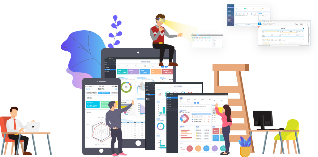 企业所有管理体系工具尽可能都纳入软件系统,全面抛弃各种Excel表格数据填报、统计、下载查看的搬运工模式。 | 门户、场景、菜单、图标、语言、色系、表单、流程、字段、报表、app、数据引用、公式运算、自定义业务函数、回写、校验、权限、消息、预警、定时或触发任务均可自定义配置。 | 有用没用的功能都在刷存在感,换色、换门户、换图标、换菜单名称、换表单字段、换可选项、换报表、自定义业务关联引用、回写,想都不用想,因为架构所限没法实现。 |